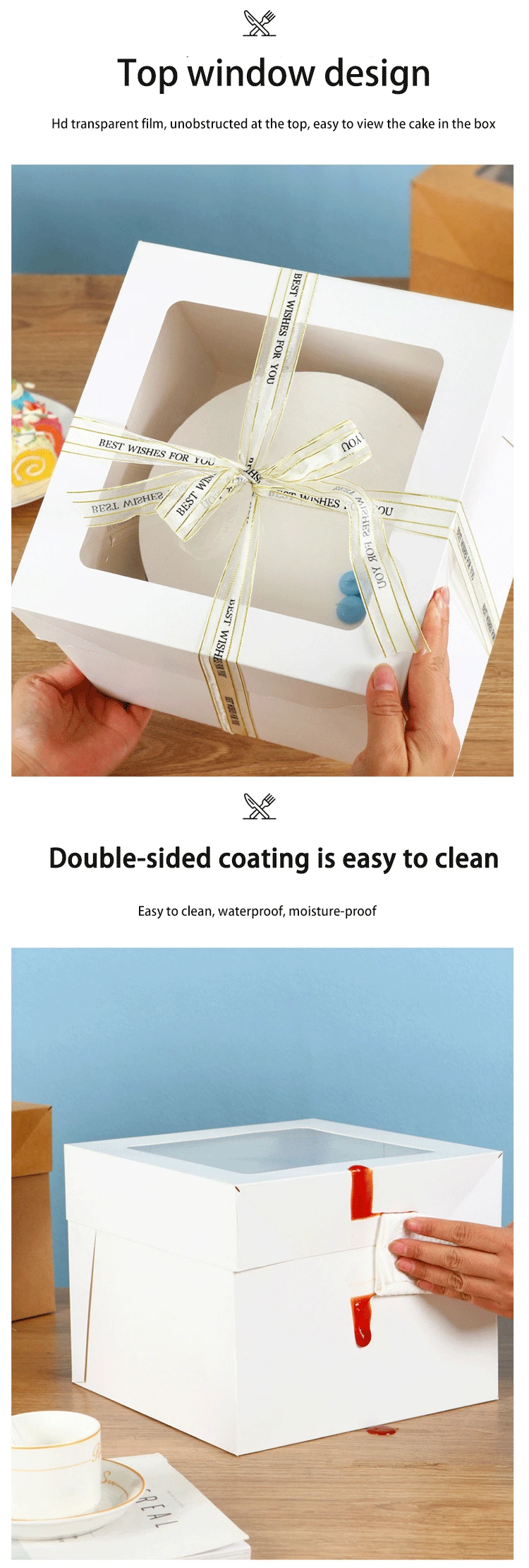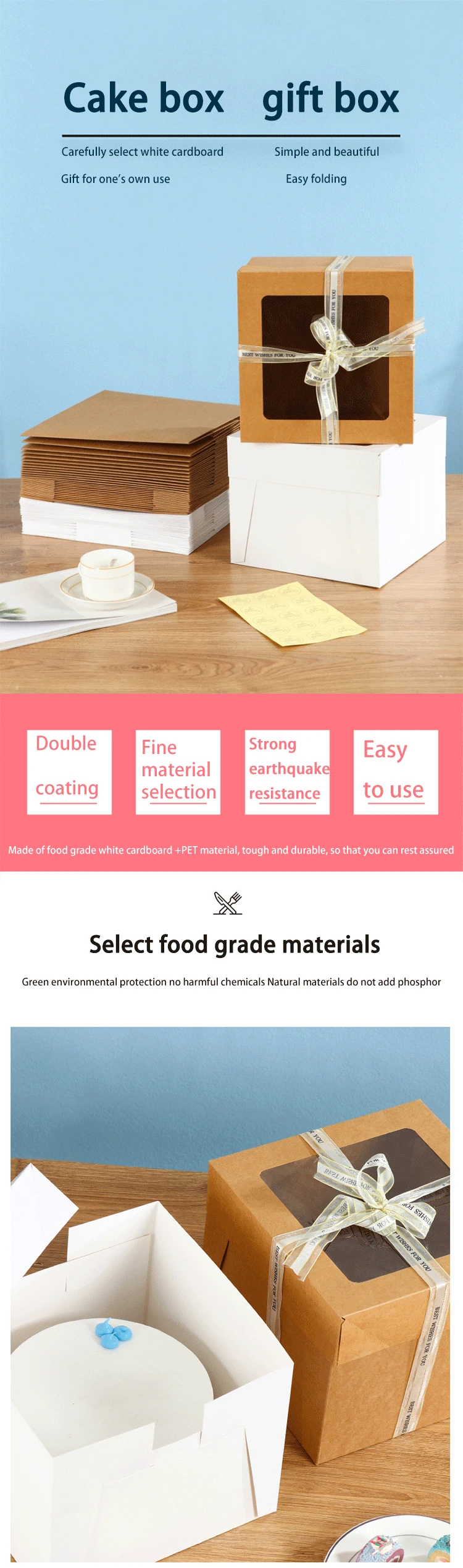 Customized Wholesale Disposable Foldable square Transparent Window Packaging Box White High-quality Baked Cake Box