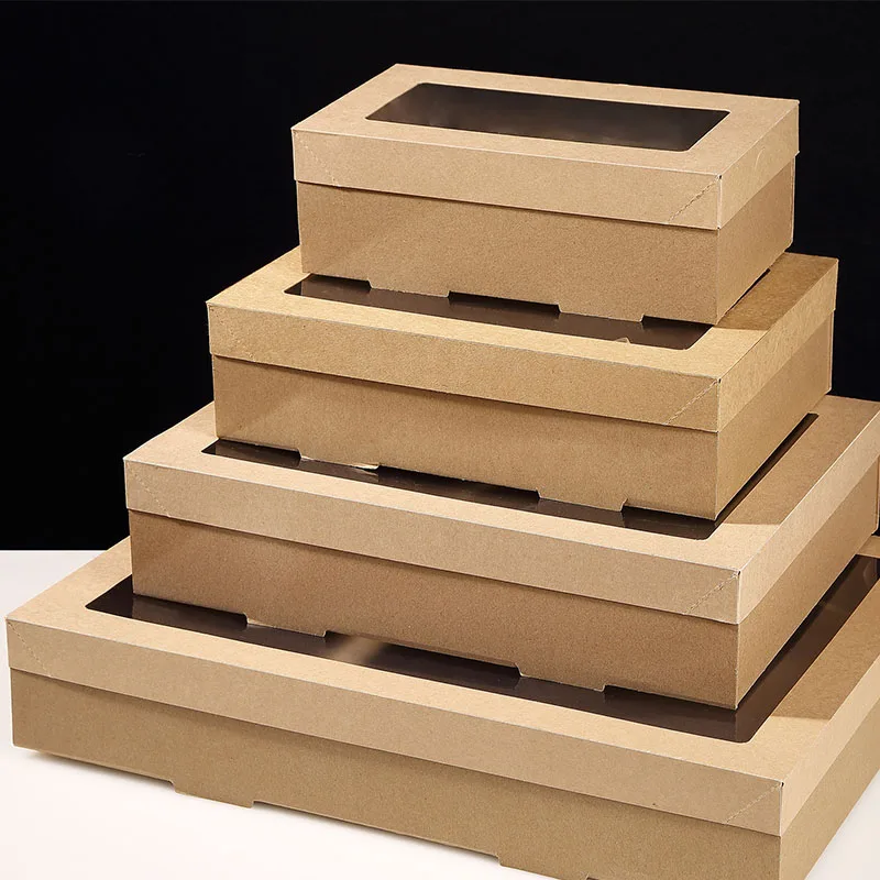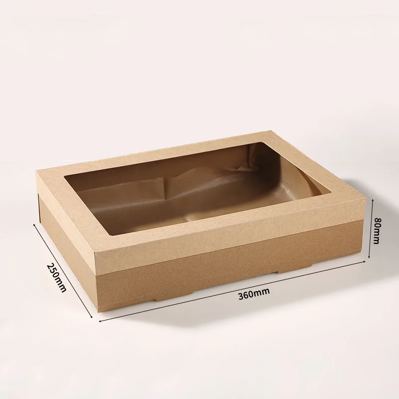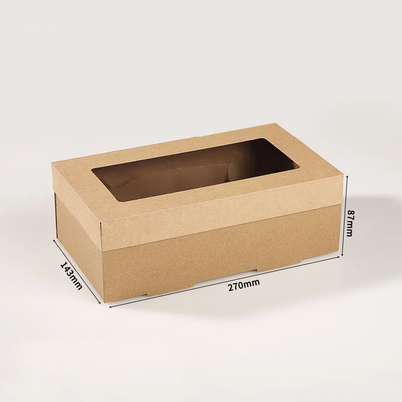 Custom Corrugated Bento Box Disposable Takeaway Eco Friendly Window Kraft Boxes with clear Lids Packaging