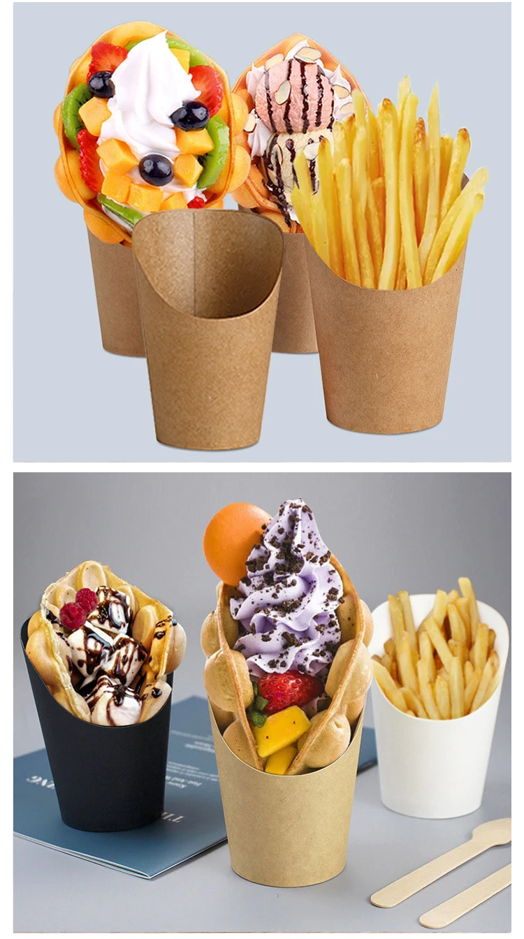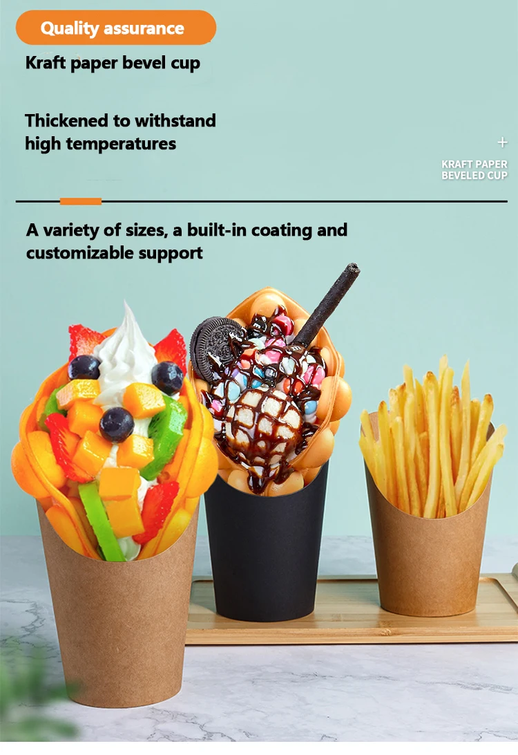 Disposable Fry Fries Party Baking Supplies Bevel Yogurt Ice Cream Dessert Cups Paper Cups Can Be Custom logo