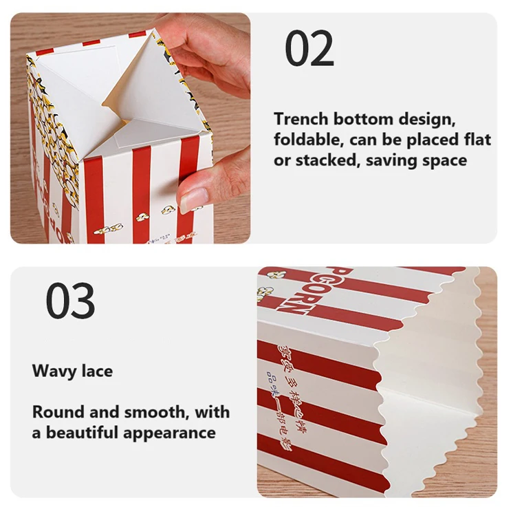 Disposable Popcorn Box Chicken Rice Krispies Birthday Party Table Stuff Paper Box Square Folding Packing Popcorn Box Food