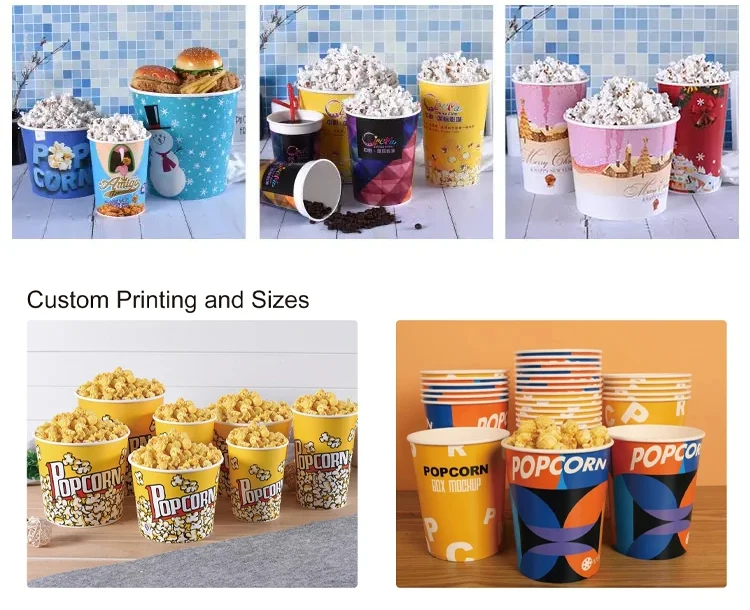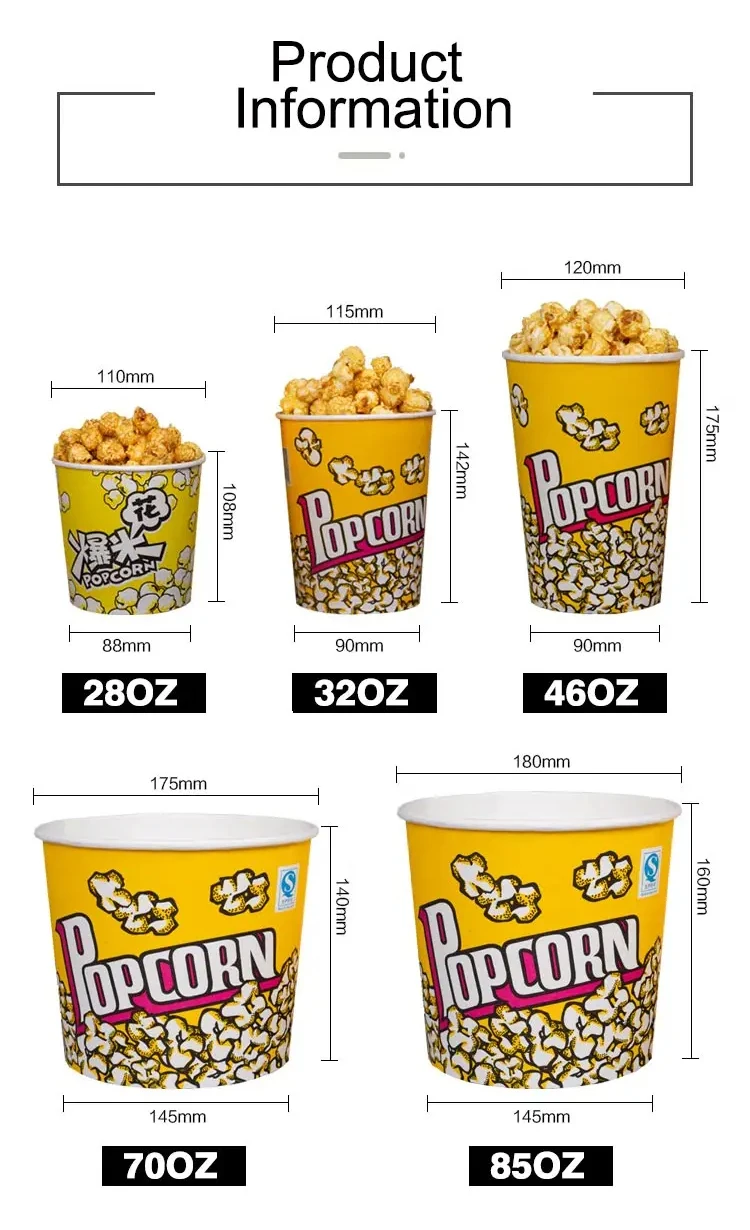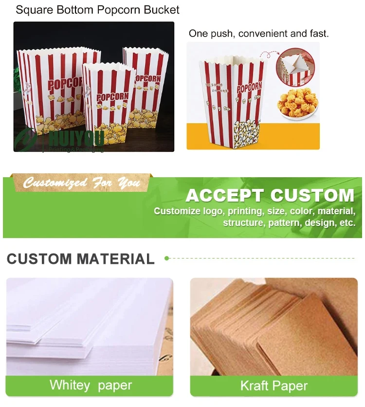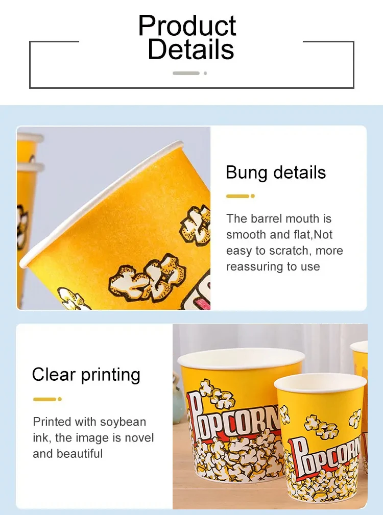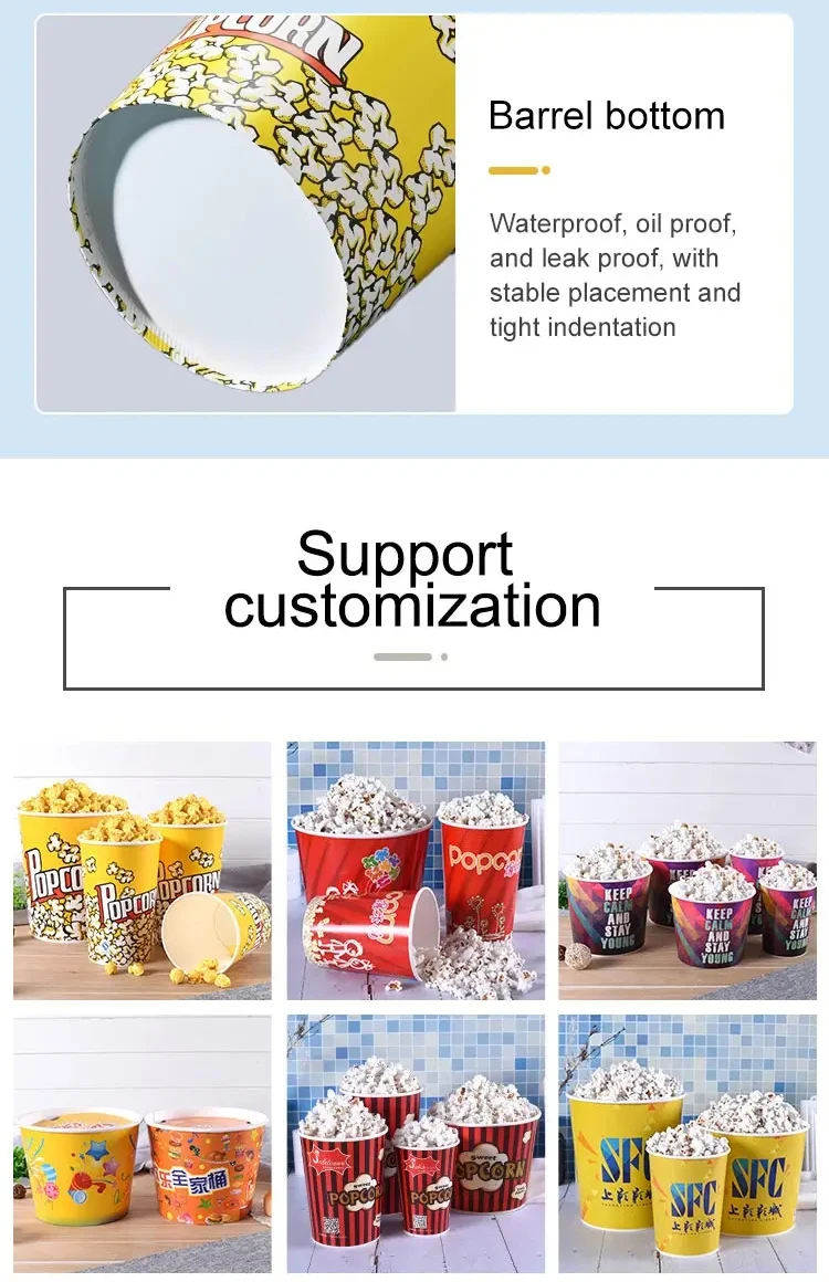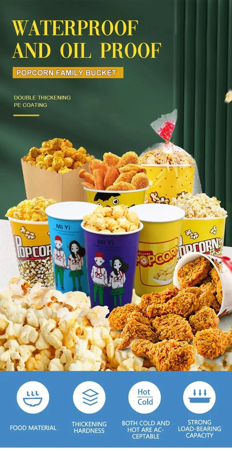 Disposable Cinema Ktv Commercial Packaging Oil-proof Food Grade Classic Parties Can Be Reused White Cardboard Popcorn Boxes