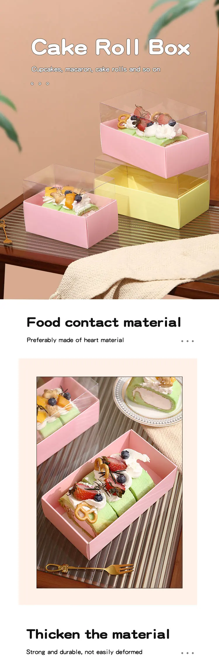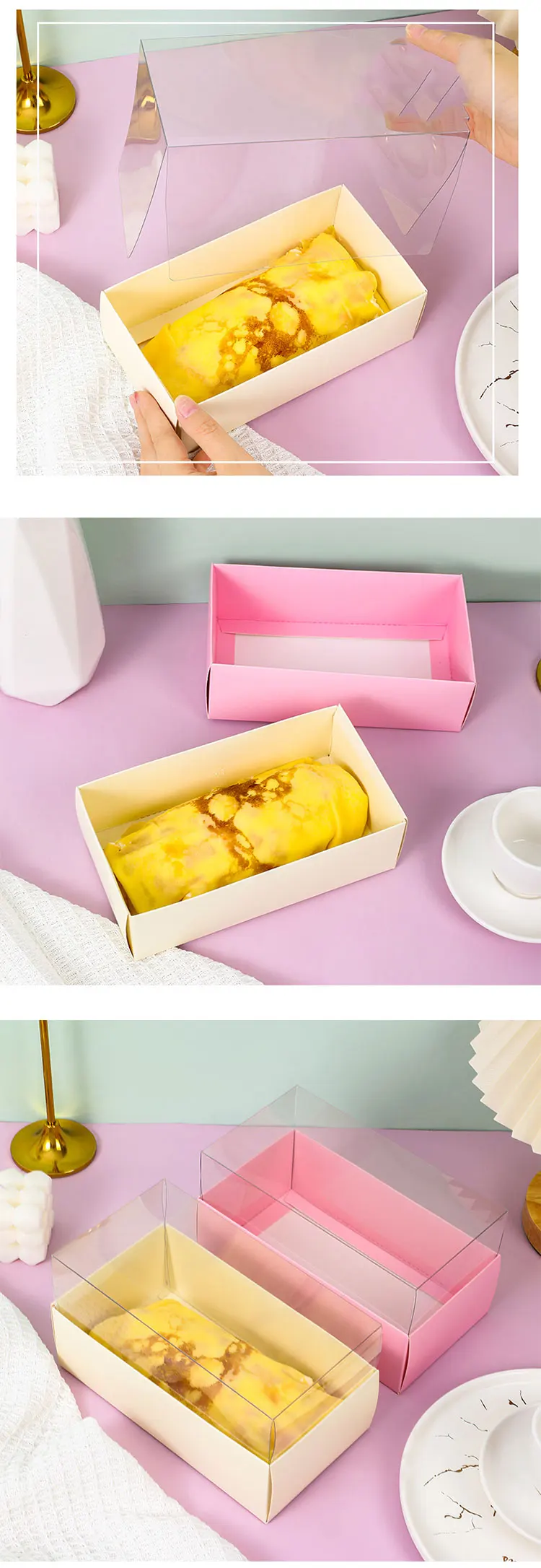 Manufacturers Direct Customized Disposable Transparent Cupcake Box Foldable Dessert Swiss Roll Cake Packaging Box