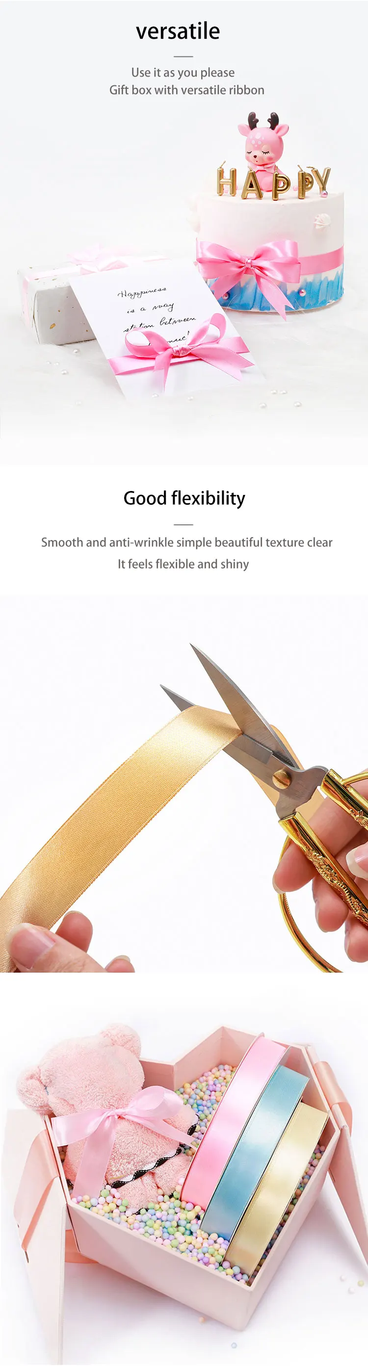 High Quality Cake Box Packaging Ribbon Fresh Flower Bouquet Decorative Ribbon Bow Solid Color Cloth Baking Ribbon