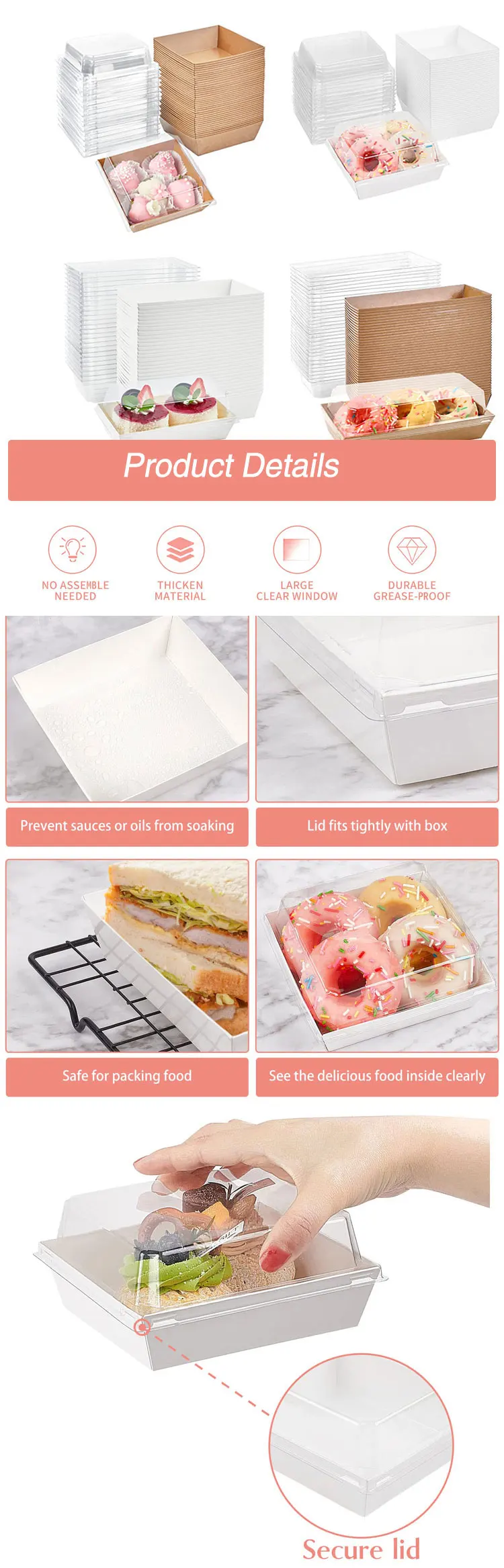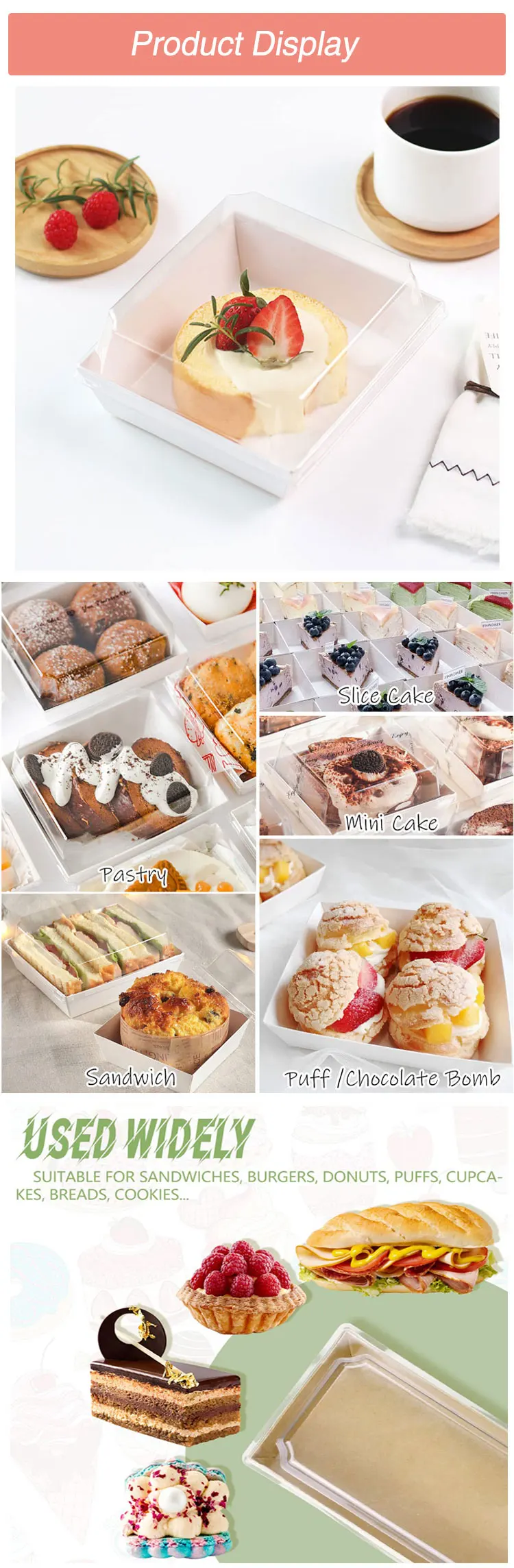 Square Transparent Safety Cover Cooked Sushi Box, Disposable Food Container, Pastry Baking Box