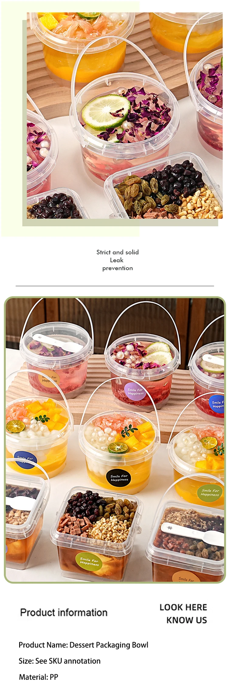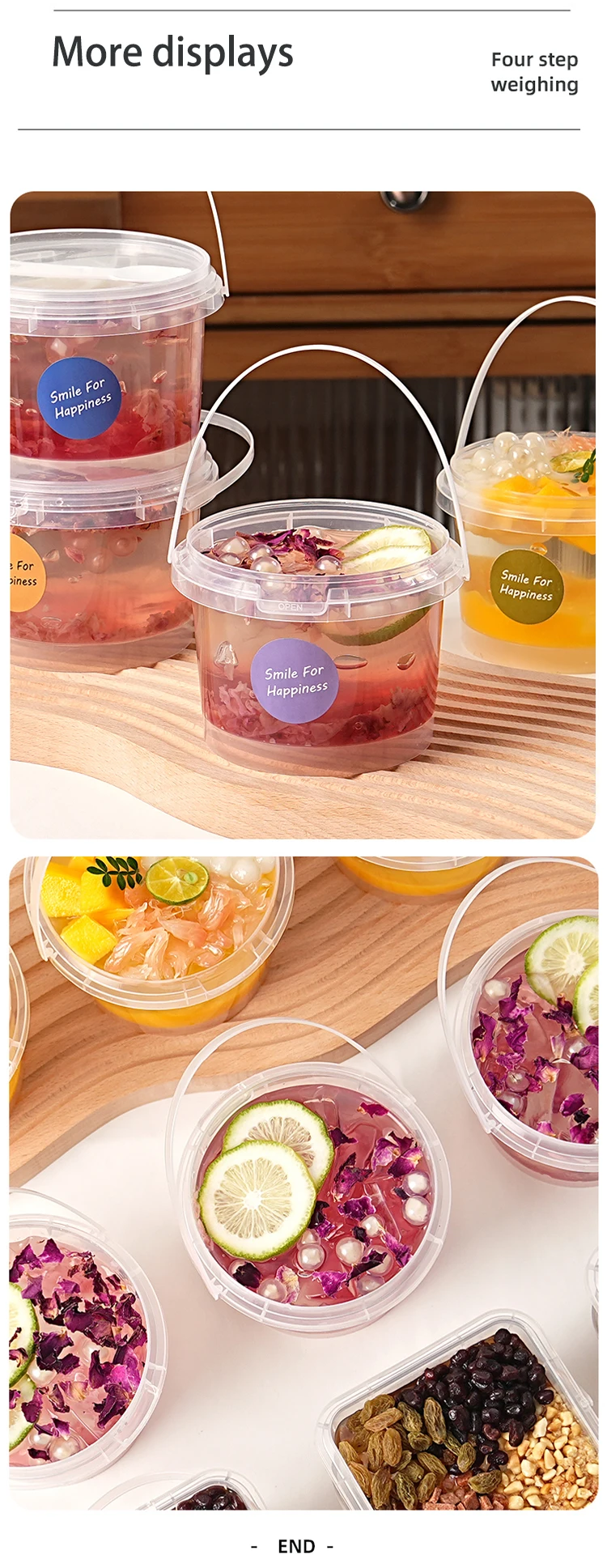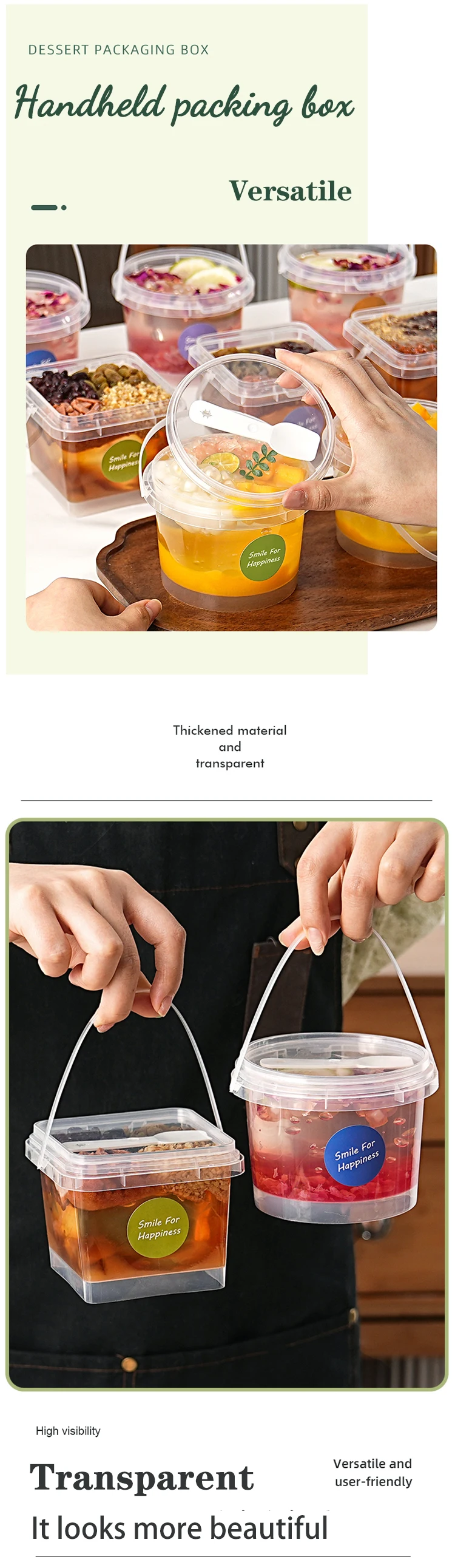 Wholesale Food Grade Transparent Disposable Food Circular square Packaging Container Lid and Handle Reusable Beverage Bucket