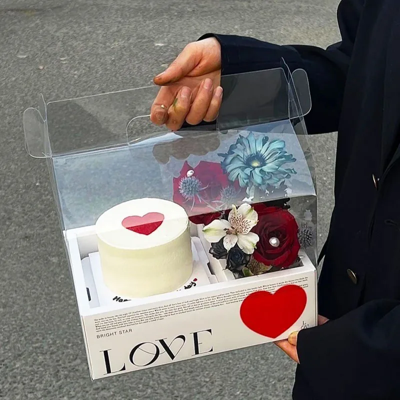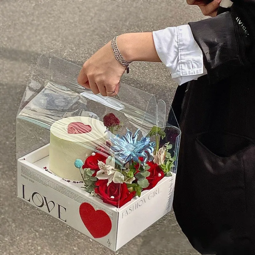 Folding Birth Day Wedding Favor Gift Cake Box Transparent Cake and Flower Box