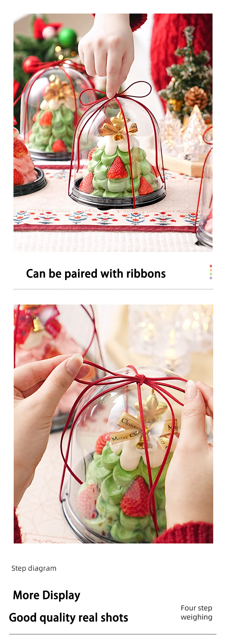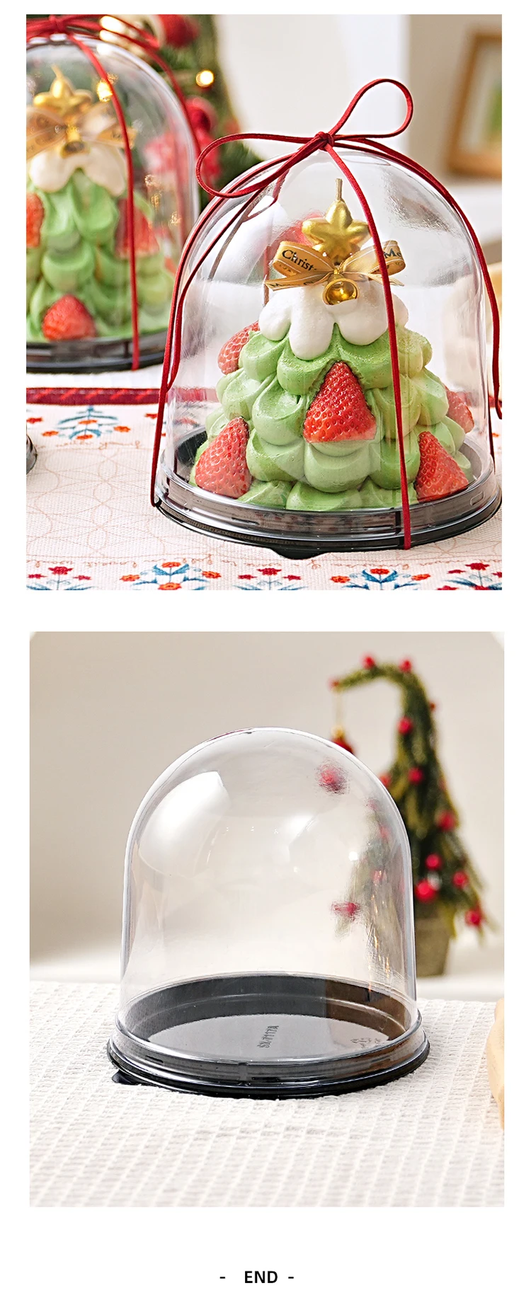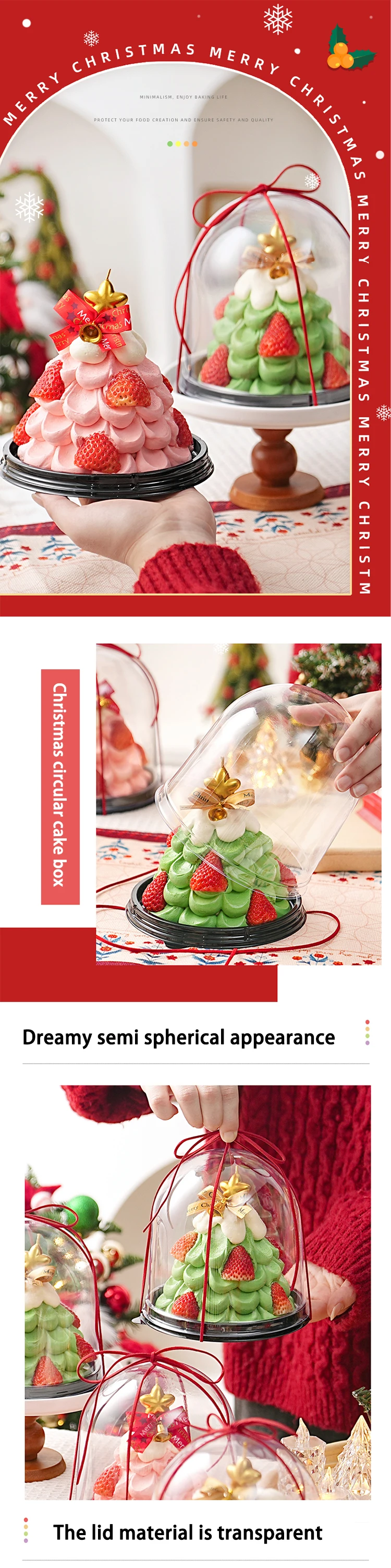 Christmas Decoration 4-inch Christmas Tree Transparent Half Circle Cake Box, Raised Gift, Dessert, Mousse Packaging Box